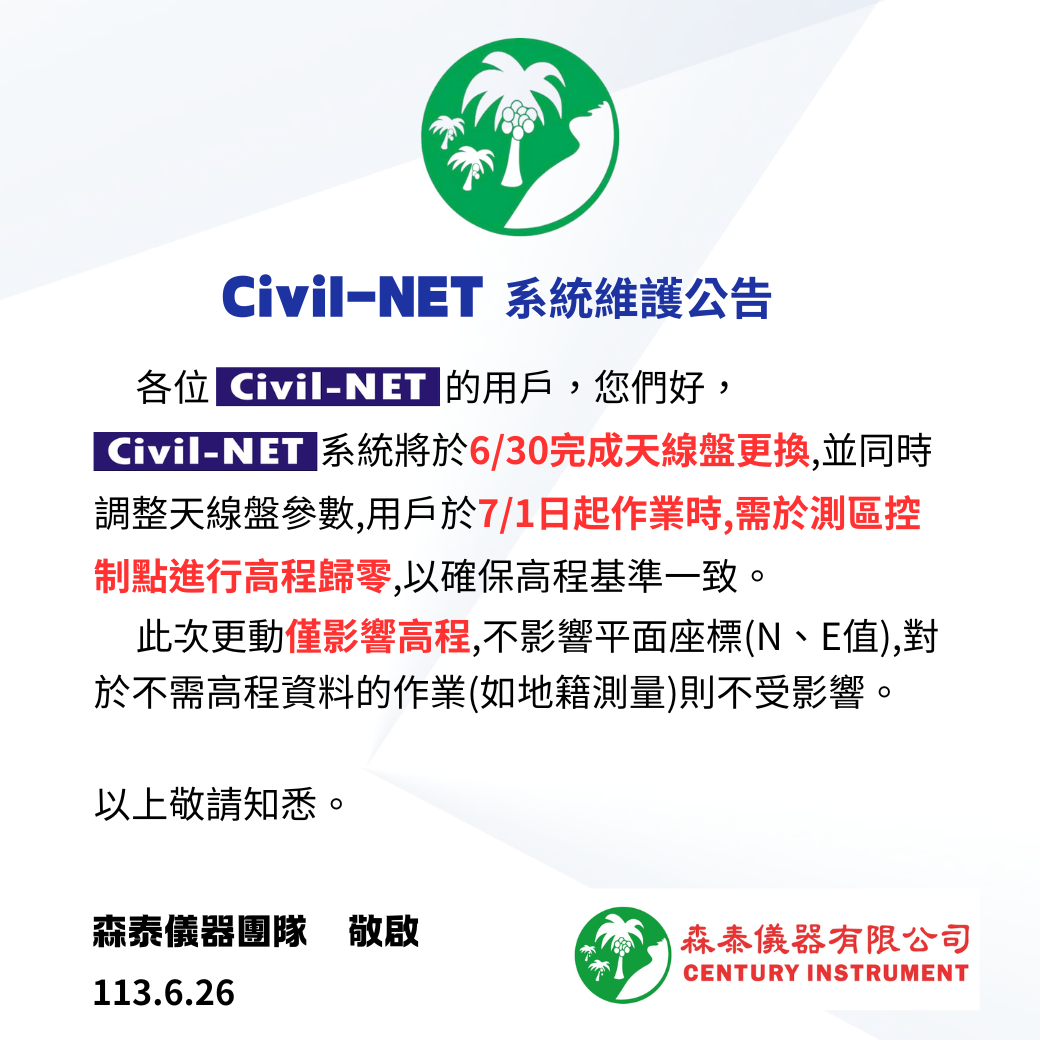 MORE[Civil-NET系統維護公告]將於6/30完成天線盤更換與調整參數